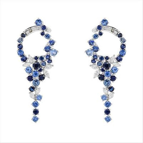 Nelson Lady's 18 Karat White Gold Flexible Sapphire and Diamond Cluster Dangle Earrings, 58 = 5.10tw Round Sapphires, 12 = 0.66tw Marquise Diamonds