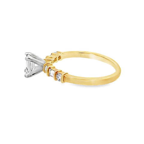 Estate Ladies Diamond Engagement Ring consisting of an emerald-cut center diamond, .54ct, VS2/F, GIA 15542025 inscription, in a four-prong platinum setting in an 18KT yellow gold ring with four (4) round diamonds and two (2) baguette diamonds, .46ctw = 1.00ctw,3.9grams. (no orig cert)