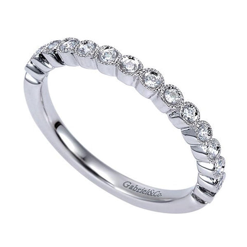 Gabriel & Co Lady's 14 Karat White Gold Milgrain Bezel Set Diamond Wedding Band/Anniversary Ring, Size 6.5, 15=0.16TW Round G/H SI2 Diamonds