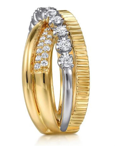Lady's Two-Tone 14 Karat Criss Cross Fashion Ring Size 8.5 with 0.54tw Round H/I SI2 Diamonds Designer: Gabriel & Co