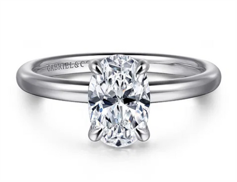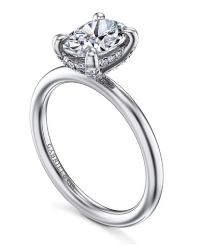 Lady's White 14 Karat Hidden Halo/Basket Solitaire Ring Size 6.5 34 0.16tw Round G/H SI2 Diamonds Designer: Gabriel & Co