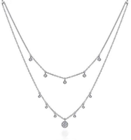 Lady's White 14 Karat Layered Diamond Drop Necklace Length 15.5 With 0.24TW Round H/I SI2 Diamonds Designer: Gabriel & Co