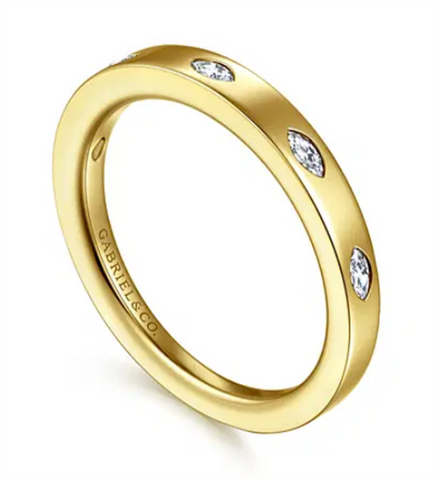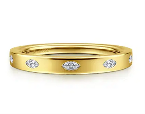 Gabriel & Co Lady's 14 Karat Yellow Gold 5 Stone Burnish Set Marquise Diamond Wedding Band/Anniversary Ring, Size 6.5 5 = 0.17tw Marquise G/H VS2 Diamonds, Gram Weight: 2.95