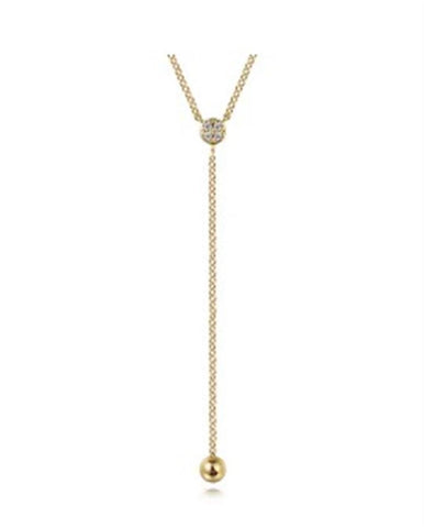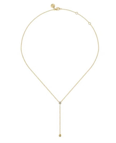 Lady's Yellow 14 Karat Bujukan Y-Knot Necklace Length 16 With 4 = 0.04TW Round I/J SI2/SI3 Diamonds Designer: Gabriel & Co