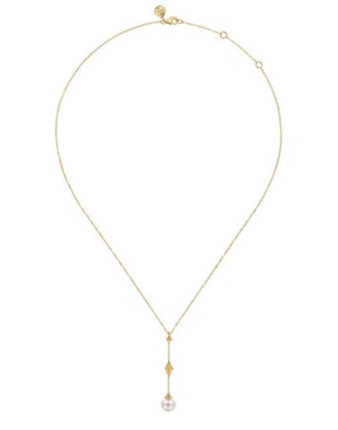 Lady's Yellow 14 Karat Clover Bujukan Drop Strand Length 17.5 one = 0.86ct Fresh Water Pearl Designer: Gabriel & Co