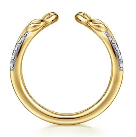 Lady's Yellow 14 Karat Curved Floral Open Wedding/Anniversary Ring Size 6.5 14 = 0.15tw Round G/H SI2 Diamonds Designer: Gabriel & Co