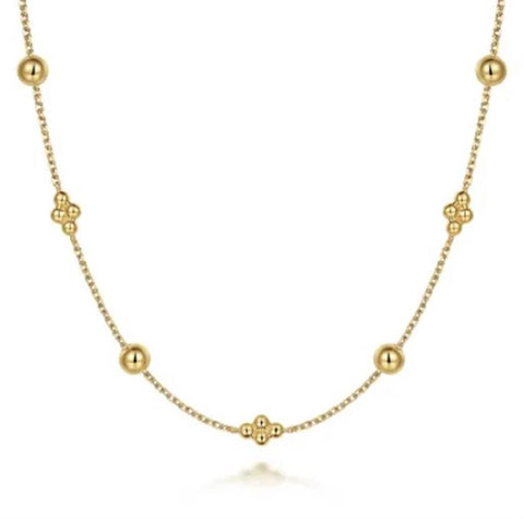 Yellow 14 Karat Bujukan Bead Station Gold Necklaces Length 17.5 Designer: Gabriel & Co