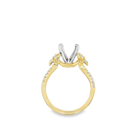 Lady's Two-Tone 14 Karat Floral Cathedral Solitaire Ring Size 6 22 = 0.26tw Round G/H VS2/SI1 Diamonds Designer: Nelson