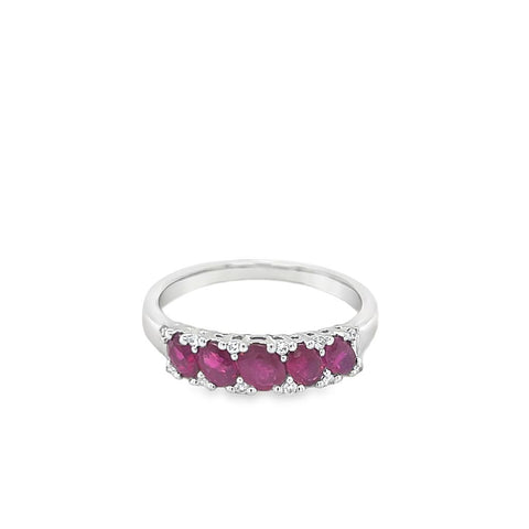 Lady's White 18 Karat 5 Stone Band Fashion Ring Size 6.5 5 = 1.05tw Oval Rubies