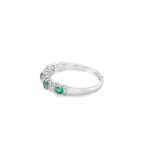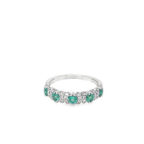 Lady's White 18 Karat 5 Stone Fashion Ring Size 7 5 = 0.50tw Round Emeralds