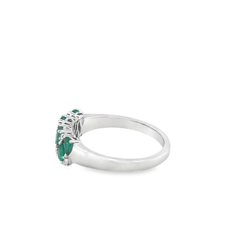 Lady's White 18 Karat Alternating 2 Row Fashion Ring Size 6.5 7 = 0.59tw Pear Emeralds