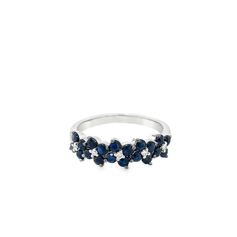 Lady's White 18 Karat Floral Band Fashion Ring Size 6.75 20 = 1.08tw Round Sapphires