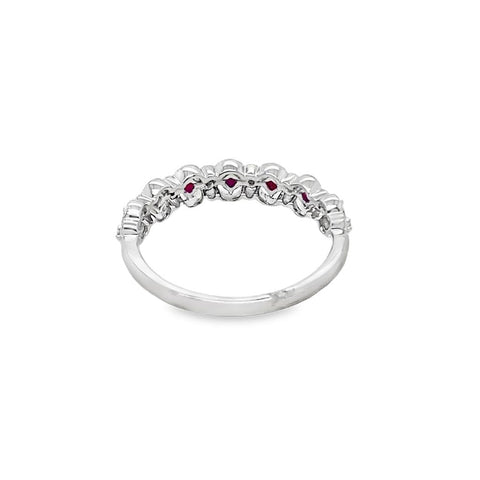 Lady's White 18 Karat Milgrain Band Fashion Ring Size 6.5 With 7 = 0.32Tw Round Rubies And 8 = 0.04TW Round G/H VS2/SI1 Diamonds Designer: Nelson