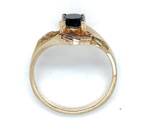 Tri-Color 10 Karat Black Hills Gold Bypass Fashion Ring Estate Jewelry Size 7 With One = 7.00X5.00Mm Oval Onyx Gram Weight: 2.52