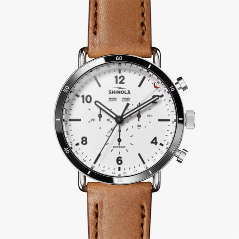 The Canfield Sport Watch with White Face and Natural Tan Leather Strap