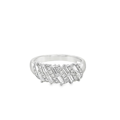 Lady's White 18 Karat Cluster Band Wedding/Anniversary Ring Size 6.5 10 = 0.57tw Baguette G/H VS2/SI1 Diamonds