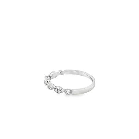 White 10 Karat Milgrain Alternating Wedding Band Estate Jewelry Size 5.25 10 = 0.09TWT Round Diamonds Gram Weight: 1.3