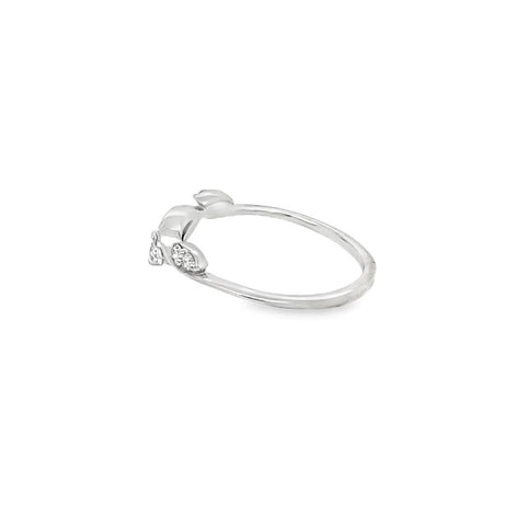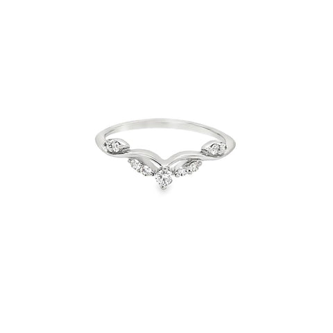 White 14 Karat "V" Wedding Band Estate Jewelry Size 4.5 one = 0.03CT Round Diamond