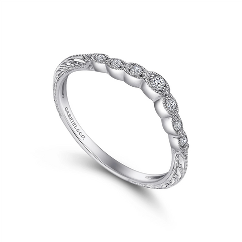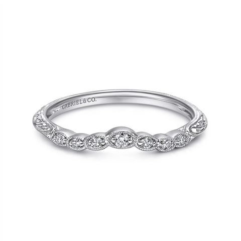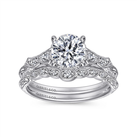 Gabriel Bridal Victorian Curved 14k White Gold 0.08 ct Total diamond weight may have a +/-5% tolerance. SI2 or higher Diamond