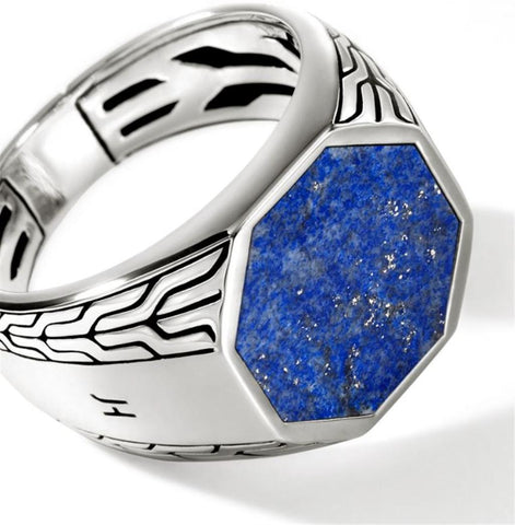 John Hardy Sterling Silver Octagon Signet Ring with Lapis Lazuli