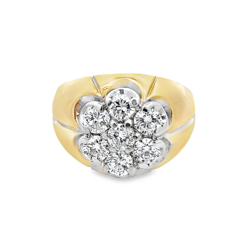 Yellow 14 Karat Mens Cluster Ring Estate Jewelry Size 10.75 With 7 = 1.51Tw Round J I1 Diamonds Gram Weight: 12.5