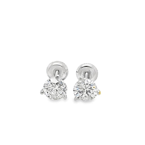 Estate 14 Karat White Gold Solitaire Round Diamond Studs With One = 1.13Ct Round F Si2 Diamond And One = 1.14Ct Round F Si2 Diamond 2.27 TCW, Gram Weight: 2.11
