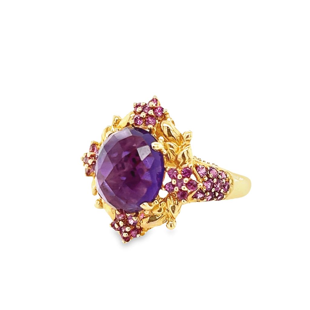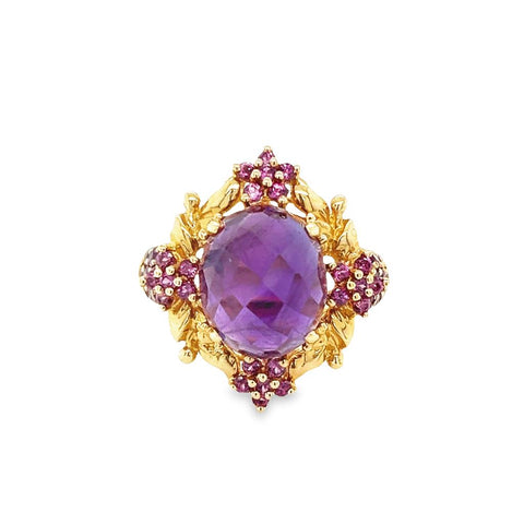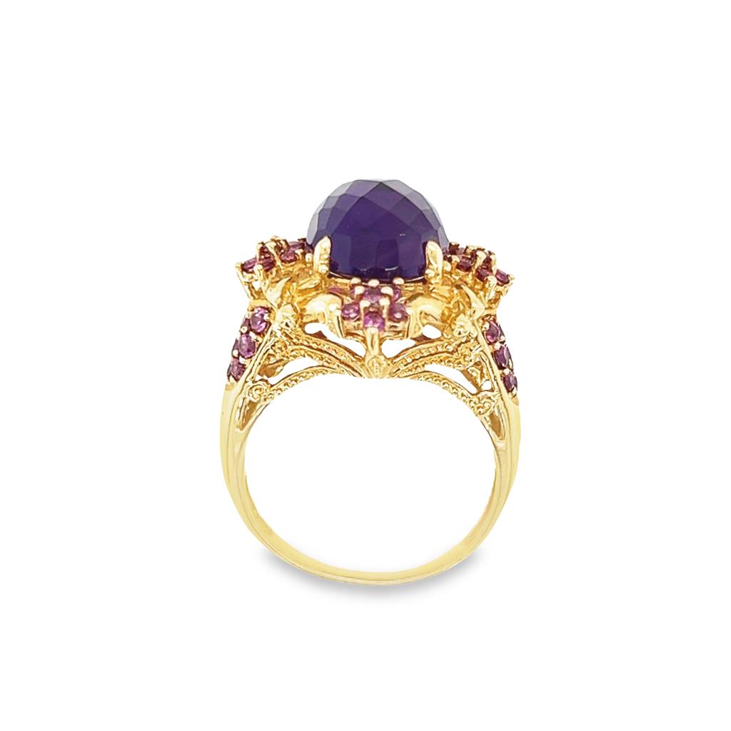 Yellow 14 Karat Polished/Milgrain Meda Jewelry Vintage Fashion Ring Estate Jewelry Size 7.25 one 12.06x10.10mm Cabochon Amethyst