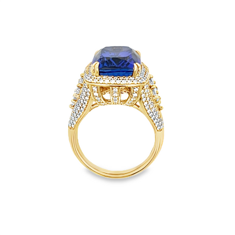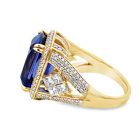 Yellow 18 Karat Cushion Tanzanite & Diamond Ring Estate Jewelry Size 6.5 With One = 10.46Ct Cushion Tanzanite And 262 = 1.88Tw Combo - Multiple Shapes G/H Vs2/Si1 Diamonds Gram Weight: 14.5