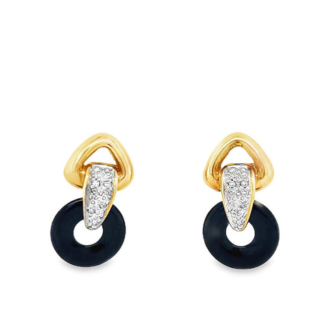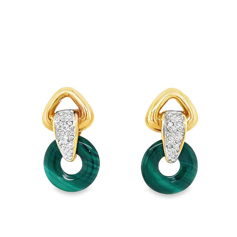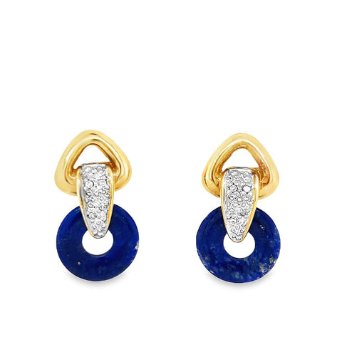 Yellow Polished 14 Karat Multi Colored Changeable Circle Stones Interlocking Dangle Post Earrings Estate Jewelry With Round Diamonds